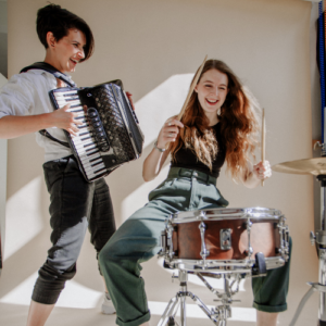 ATFK is the untethered brainchild of Amy Thatcher and Francesca Knowles: Accordion and drums like you’ve never heard before. This genre-blasting duo defy the preconceptions of what their instruments can do, breaking with tradition while tactfully adopting it as a playground for experimentation. ATFK’s sound is one of both raucous energy and sympathetic intensity, combining percussion, synths, keys and vocals for an unapologetic brew of colourful composition.
